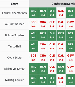 • For each series, they also pick how many games they think the series will go (4, 5, 6 or 7 games)