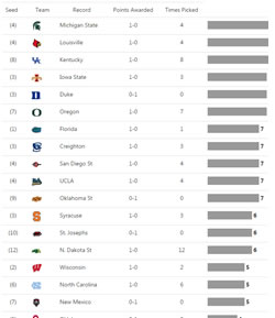 • Members pick any NCAA teams out of the field of 64. No other picks are made during the tournament.