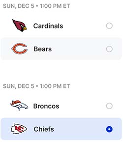 - Each pool member chooses one NFL team each week.